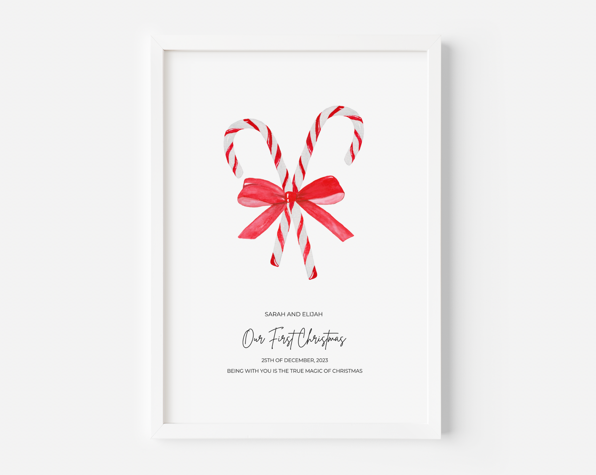 Add a touch of holiday romance with our Candy Cane Print. Personalise with your names and a sentimental quote. Order now and unwrap the love!