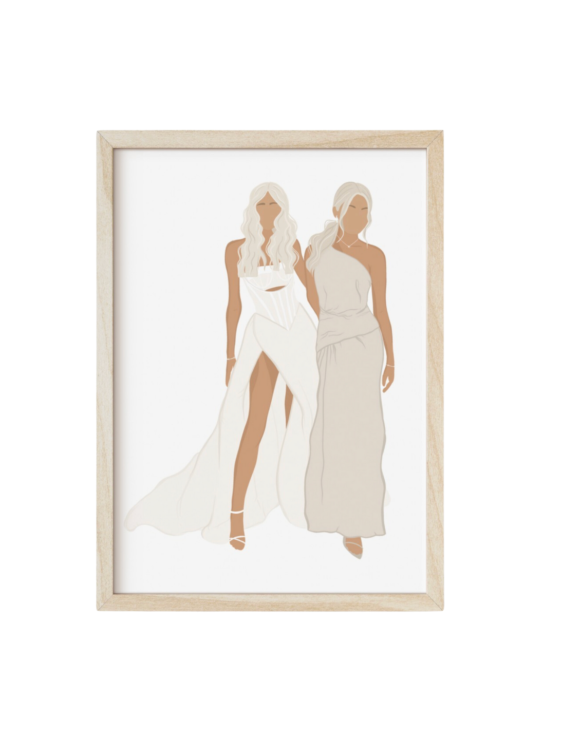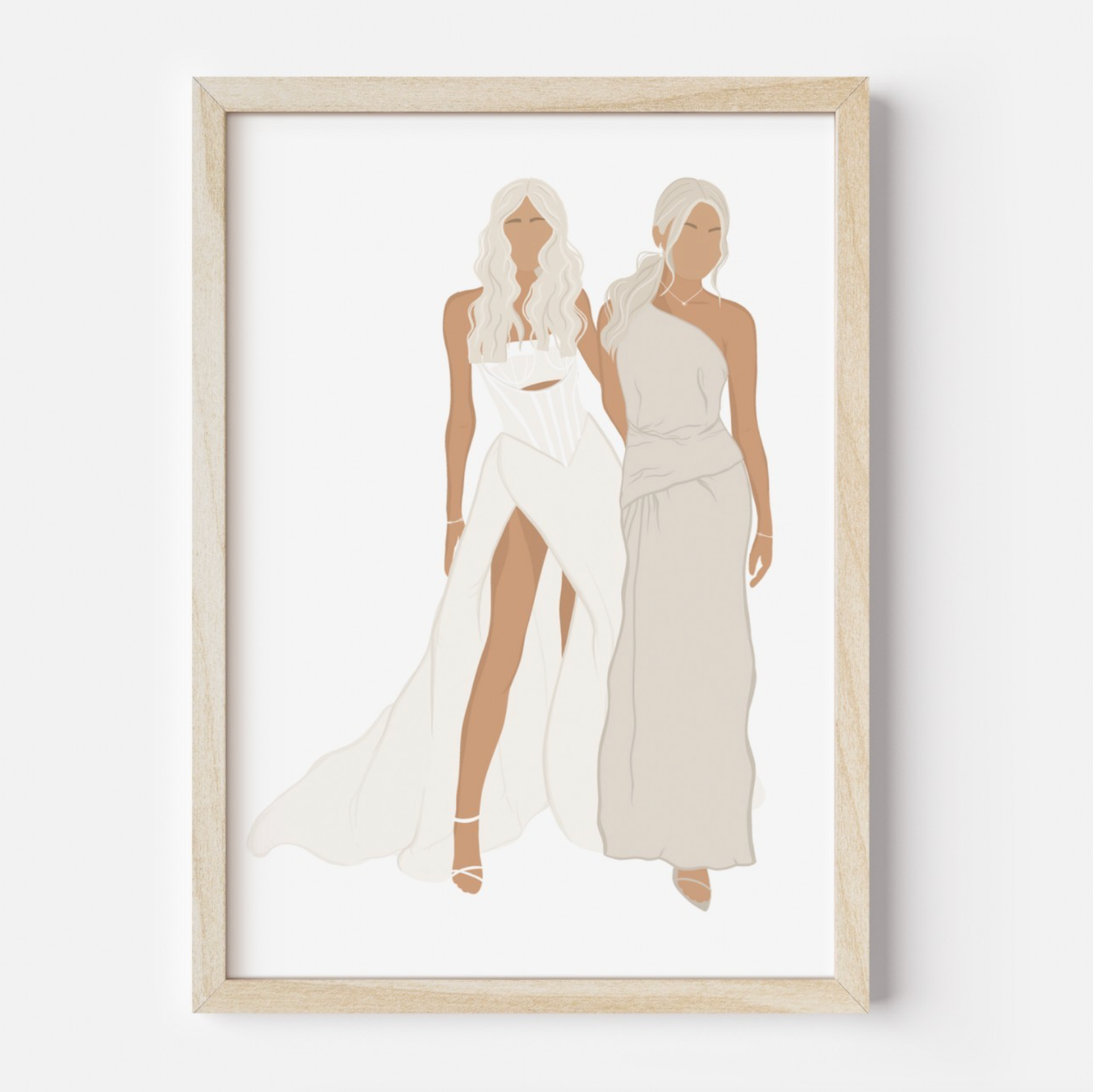 Please note that if your image includes any complex clothing eg. Florals/patterns I will use a block colour only, the style of the artwork does not allow for complex details. All illustrations are completed without backgrounds as only people in the images are drawn. All illustrations are faceless and only include hair and eyebrows.