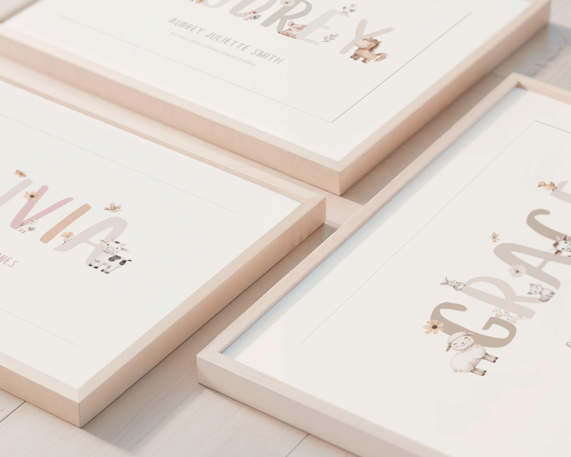 The cutest addition to our name collection. Our Farm Animal Name print features watercolour illustrations and our bespoke fonts to create a truly personalised gift. Ideal for newborn announcements, kids birthdays and more!