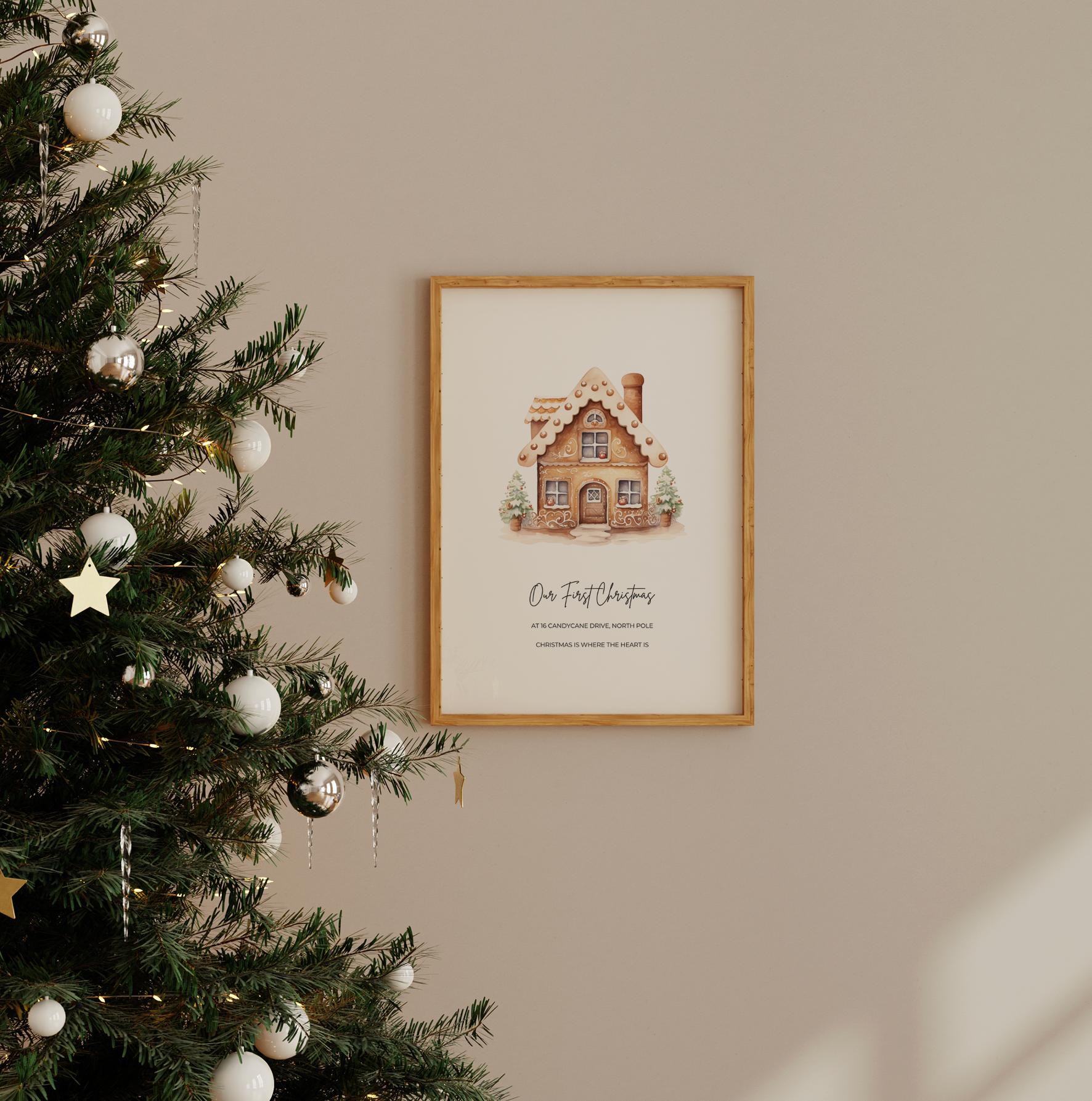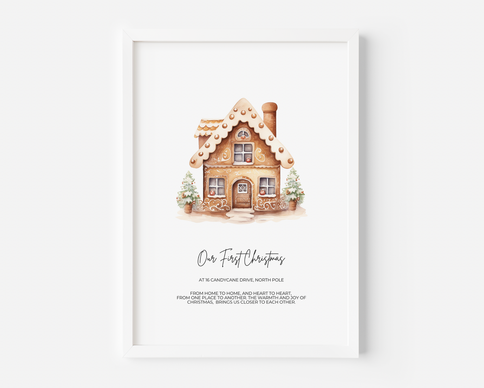Transform your home into a gingerbread wonderland with our Gingerbread House Christmas Print! Personalise with your address, or Christmas location to create a sentimental Christmas gift.